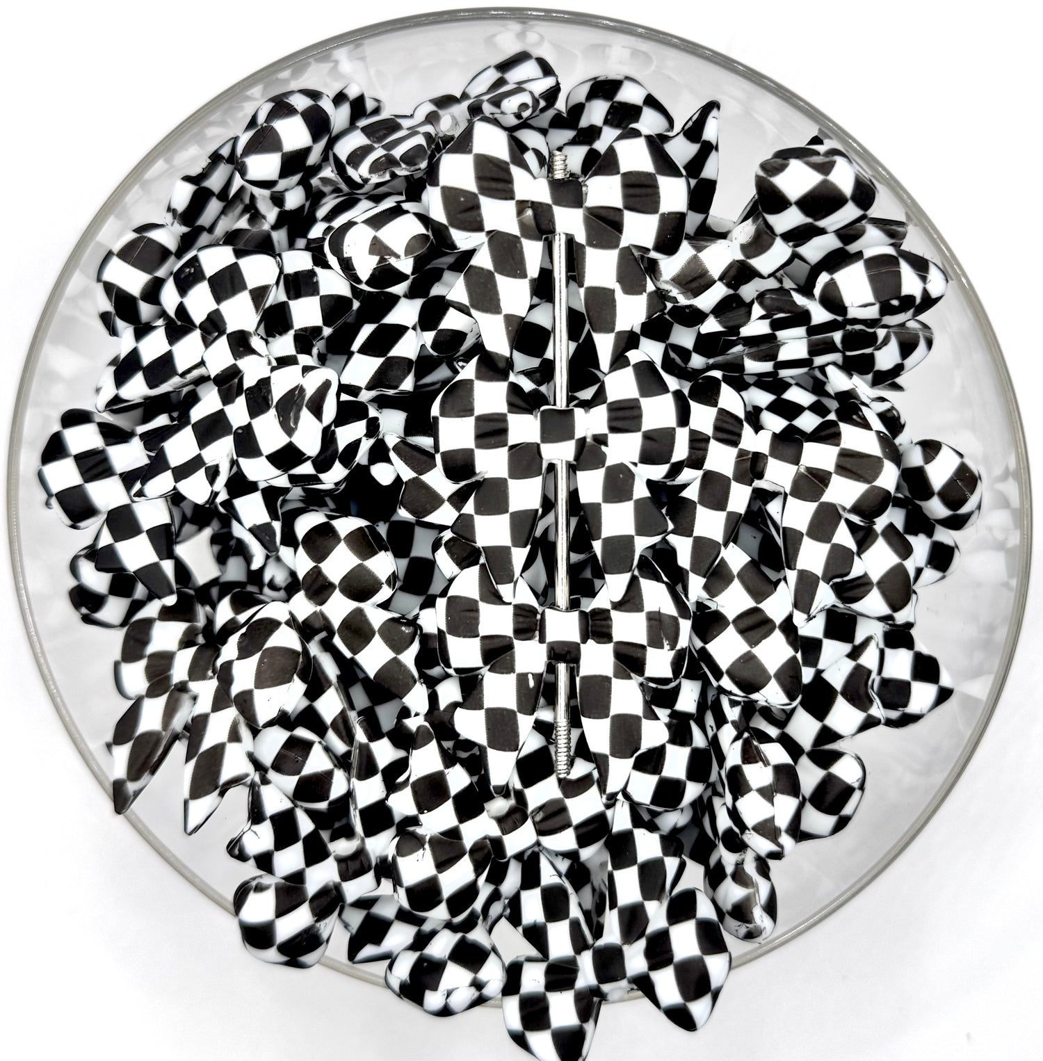 Black checkered bow (exclusive) silicone focal bead