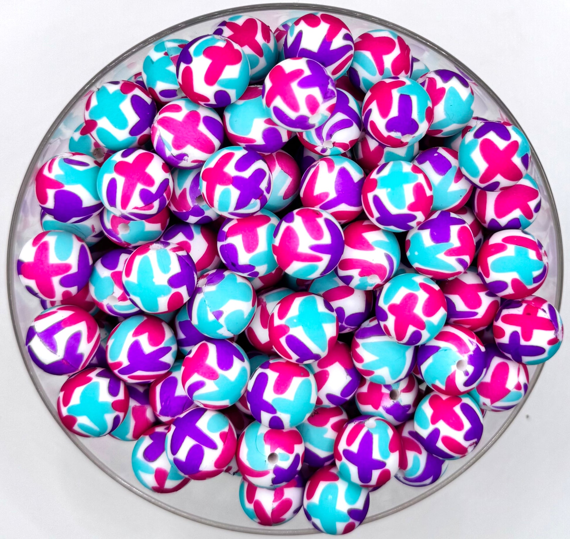 15mm brush stroke cross print (HBK exclusive) silicone bead