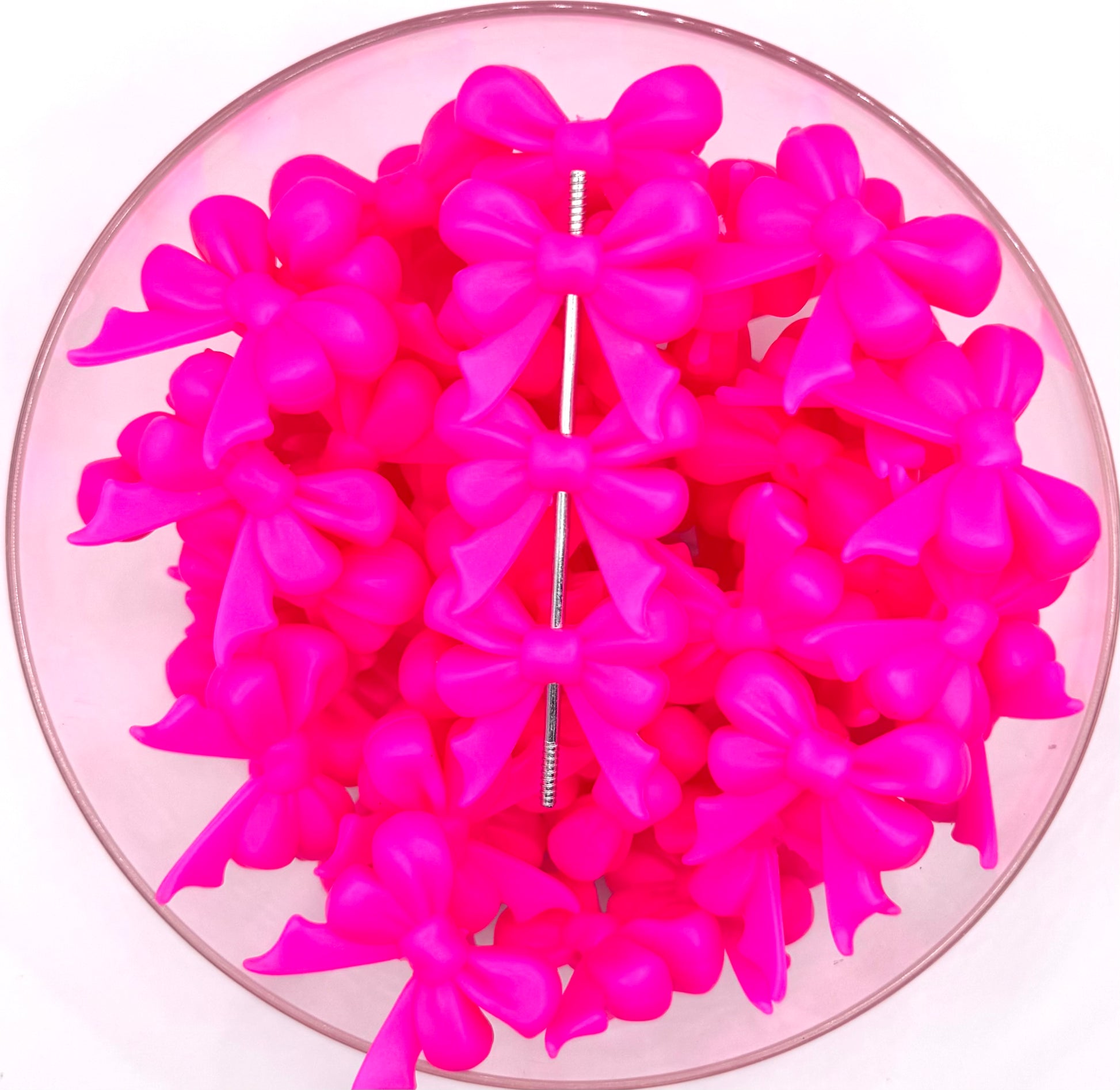 3D hot pink ribbon bow long tail (HBK exclusive & collab) silicone focal bead