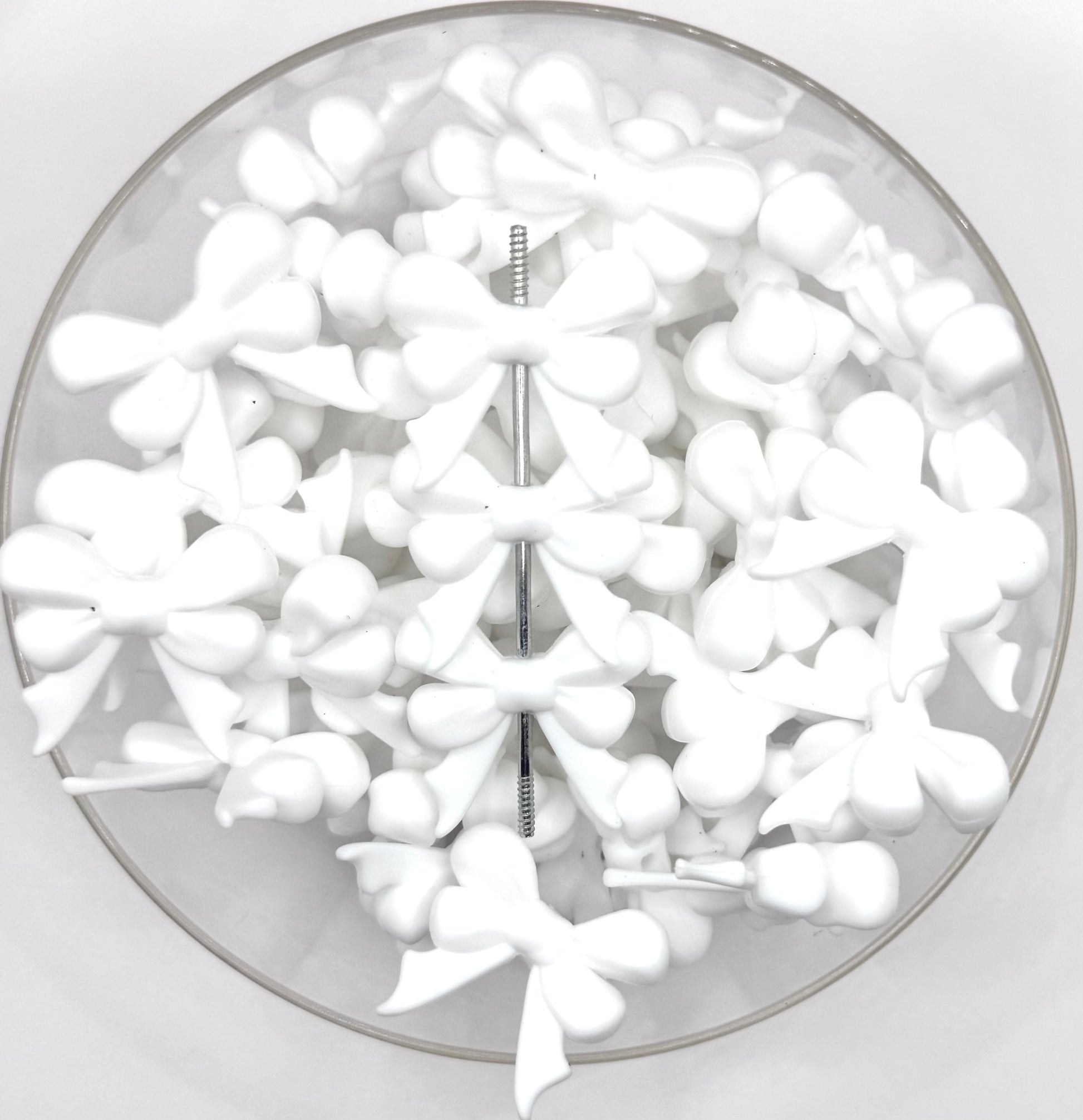 3D white ribbon bow long tail (HBK exclusive & collab) silicone focal bead
