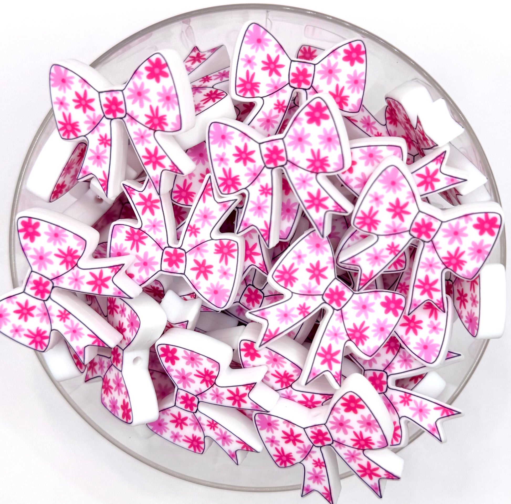 Pink daisy printed bow (HBK exclusive silicone focal bead