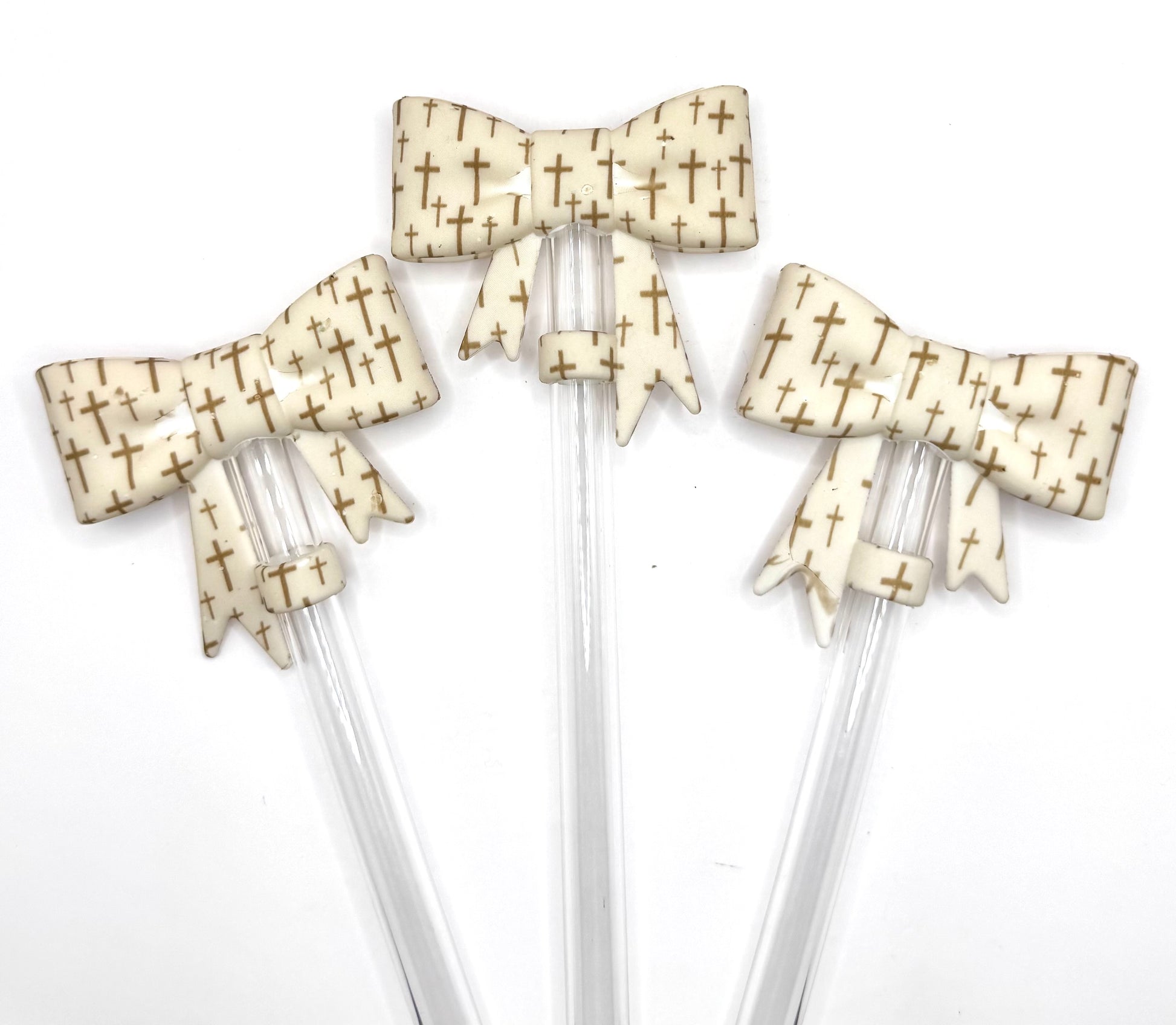 Tan cross print bow (HBK exclusive) silicone straw topper